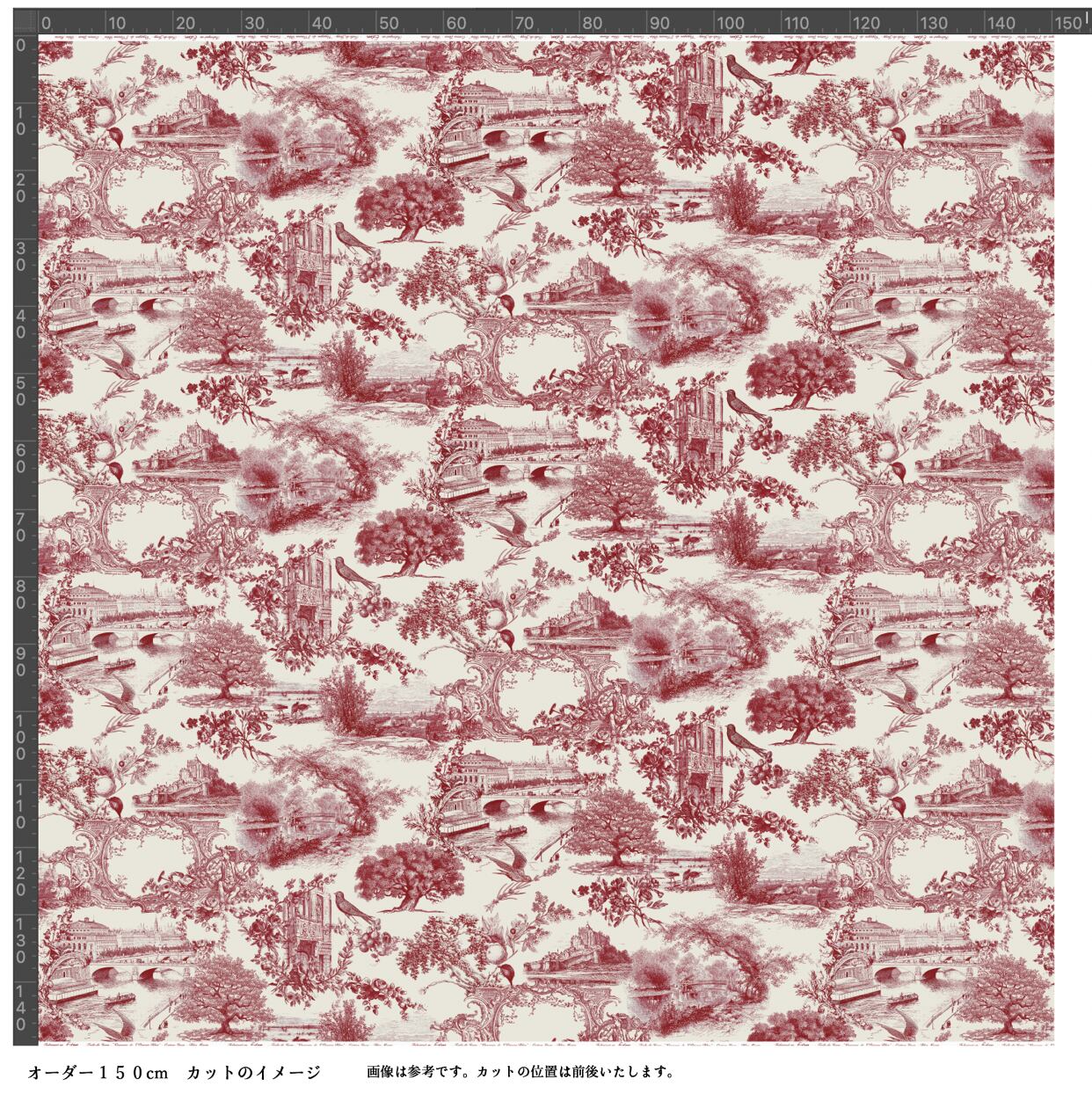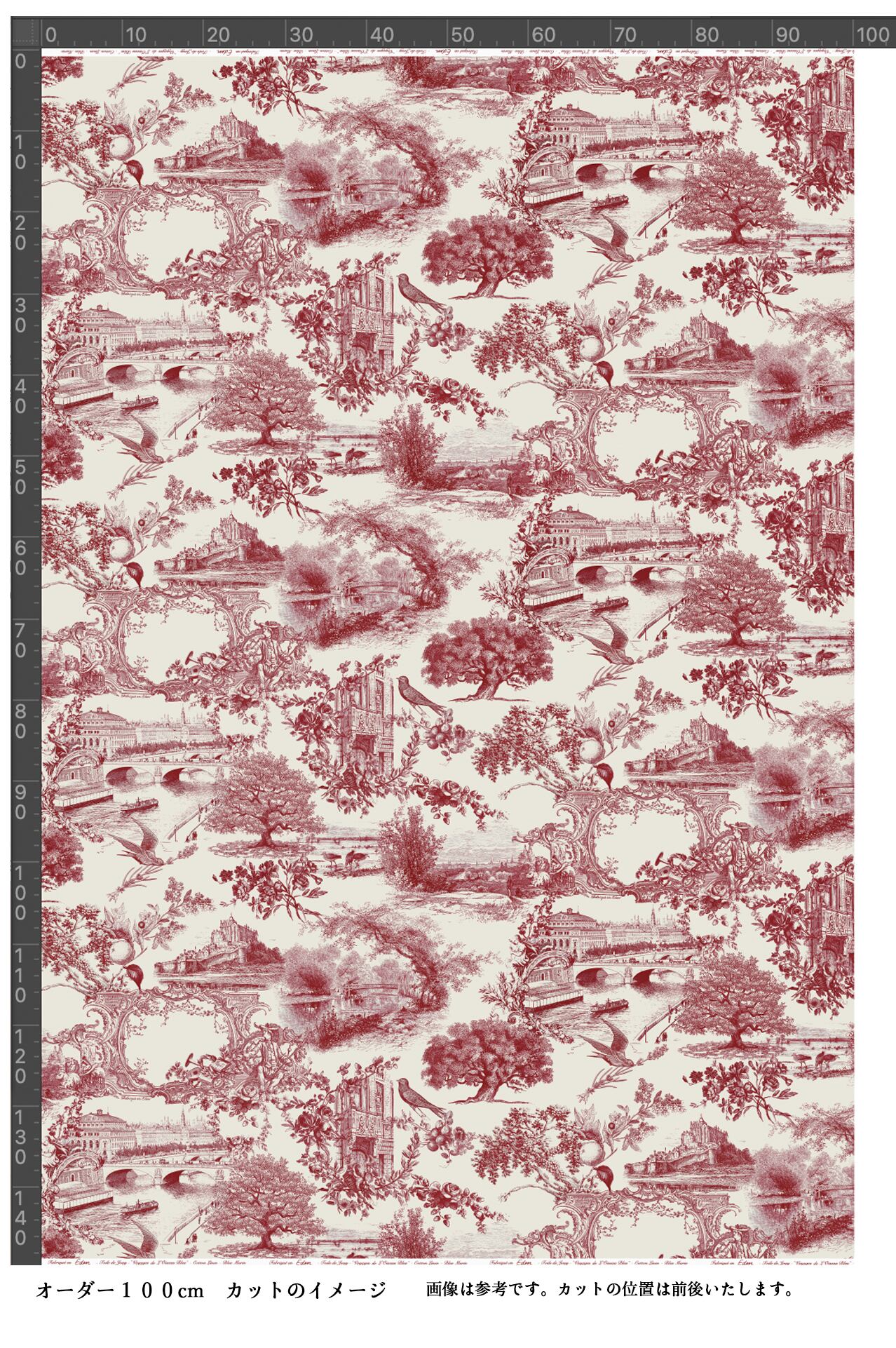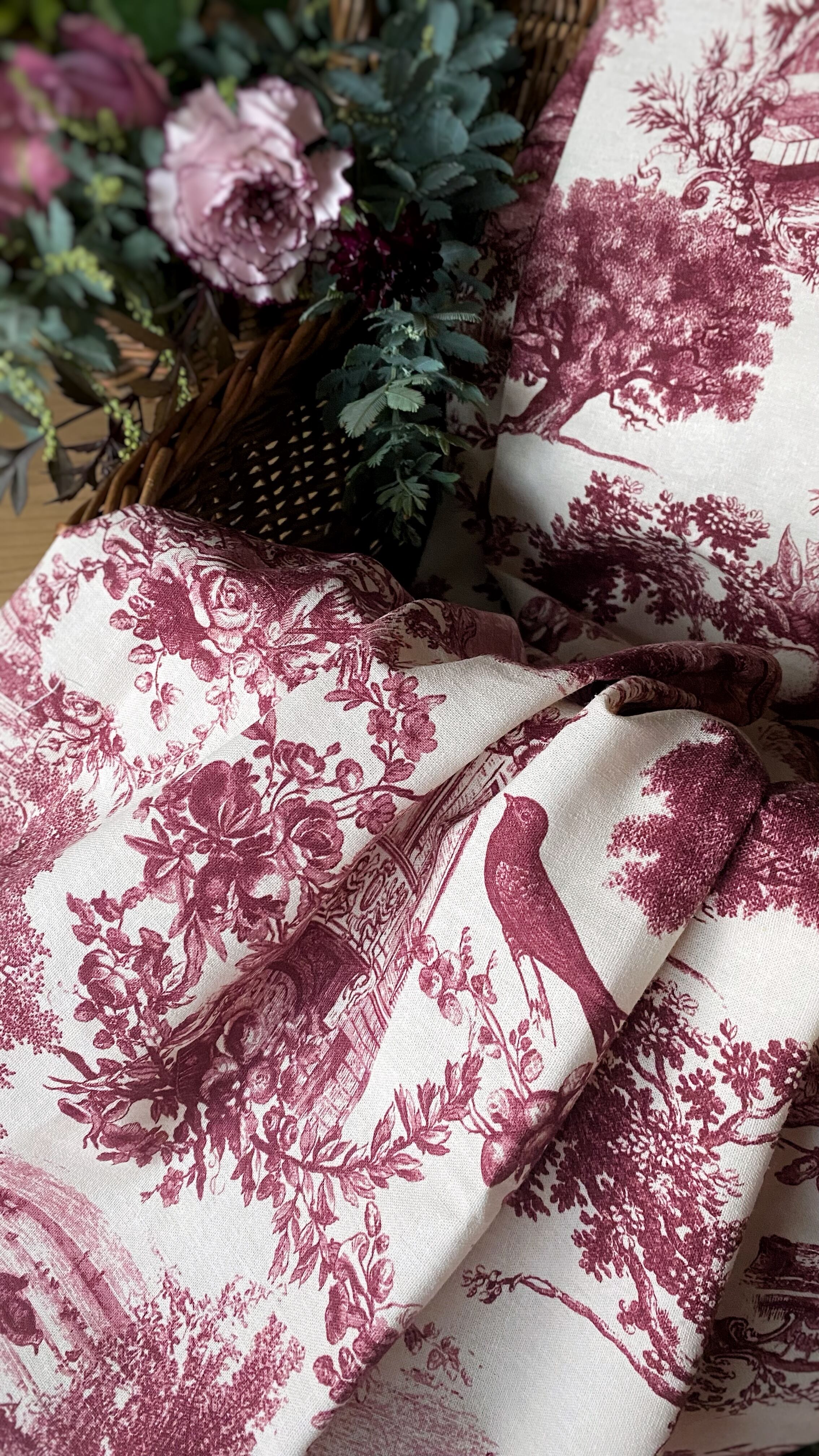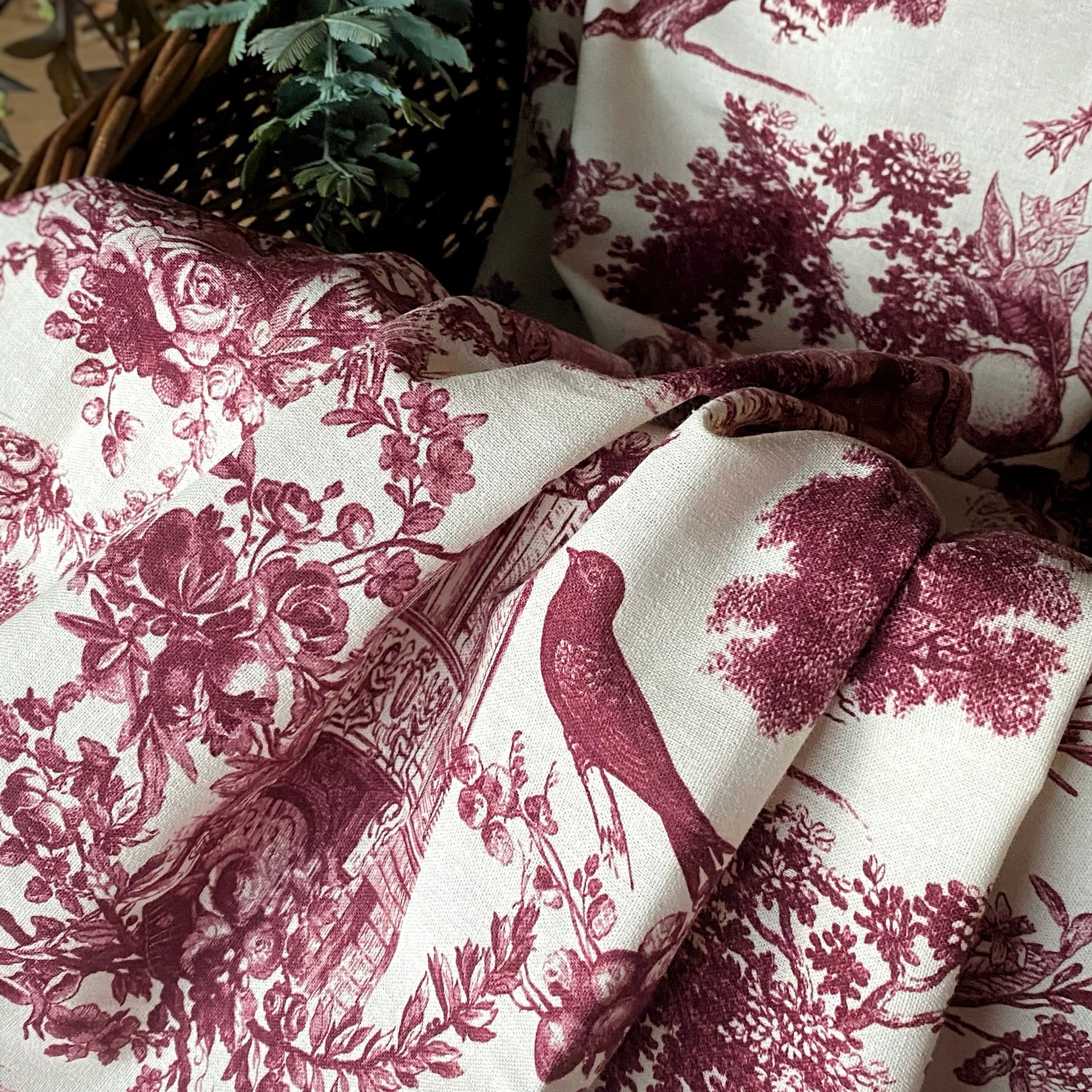 『青い鳥の旅』トワルドジュイ柄 ボルドー Bordeaux コットンリネン 50cmにつき¥6300 1mより