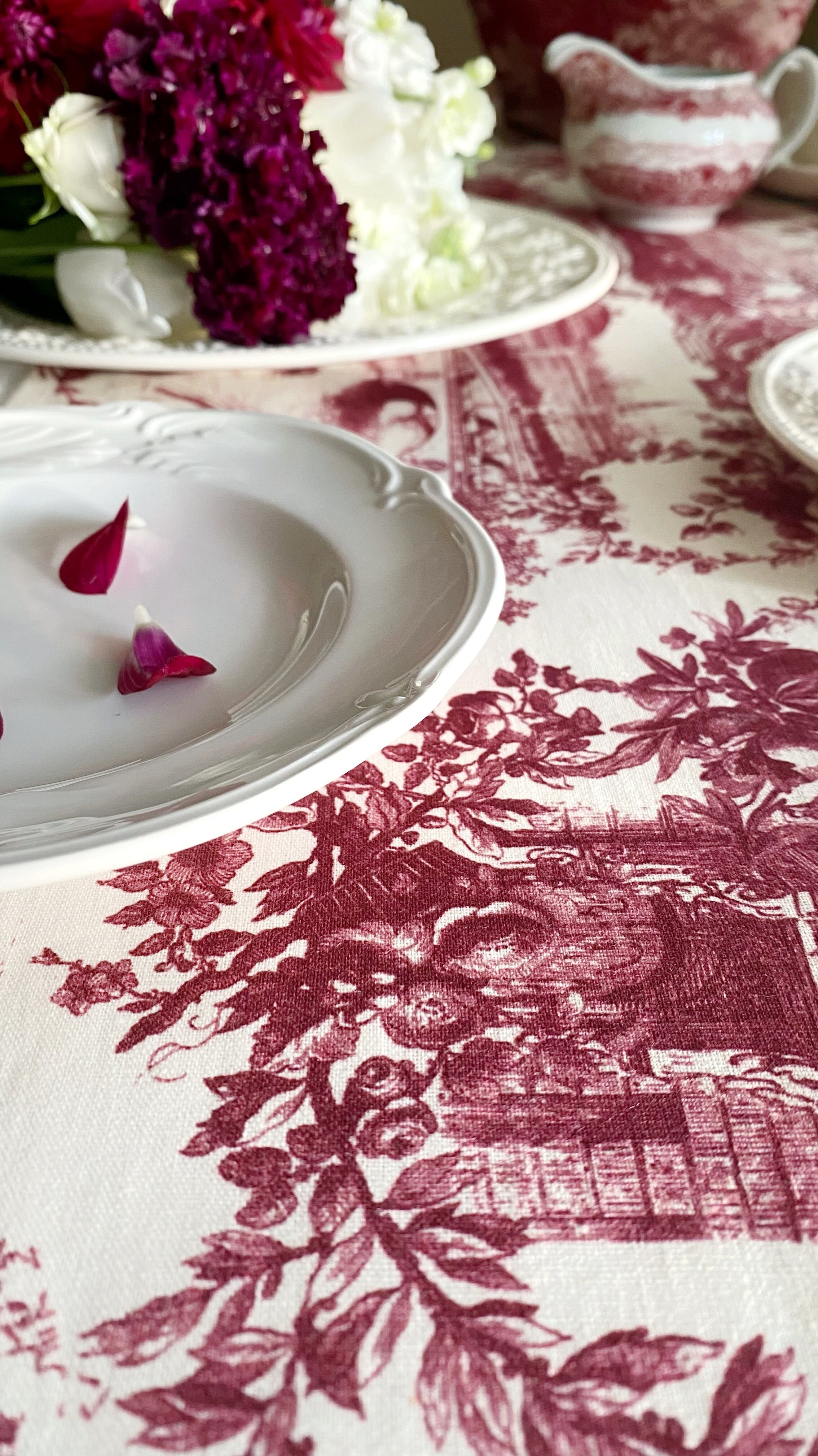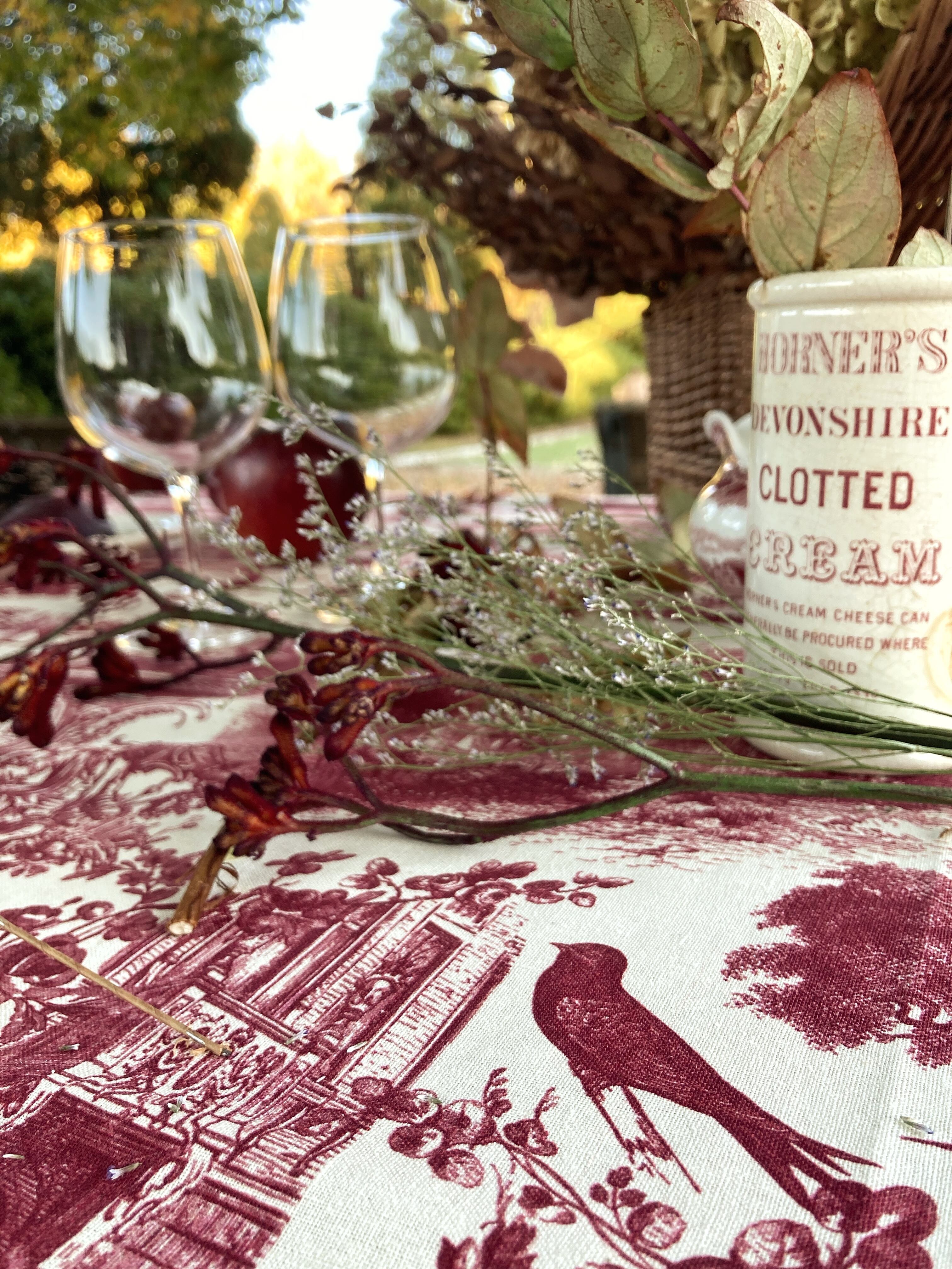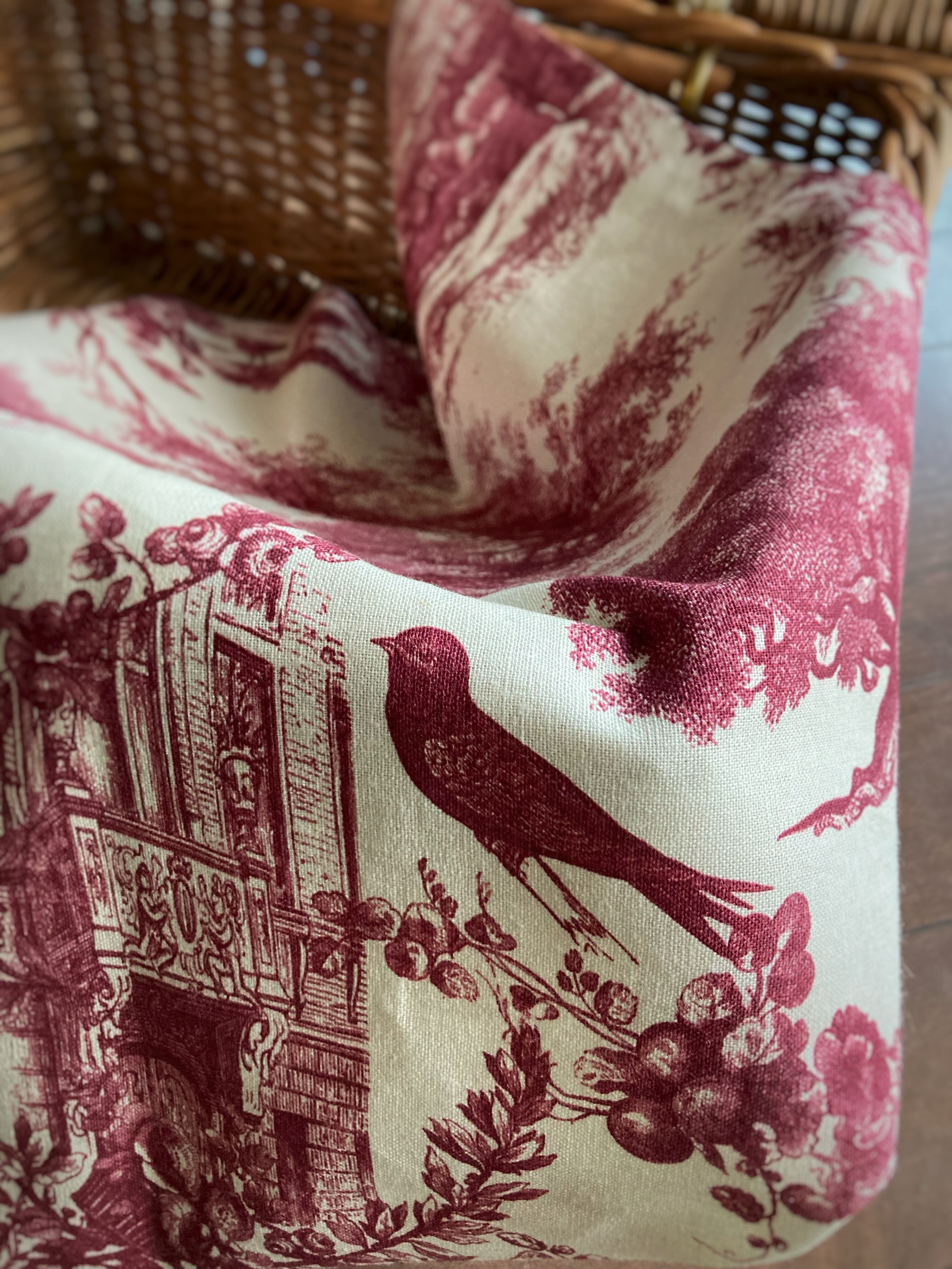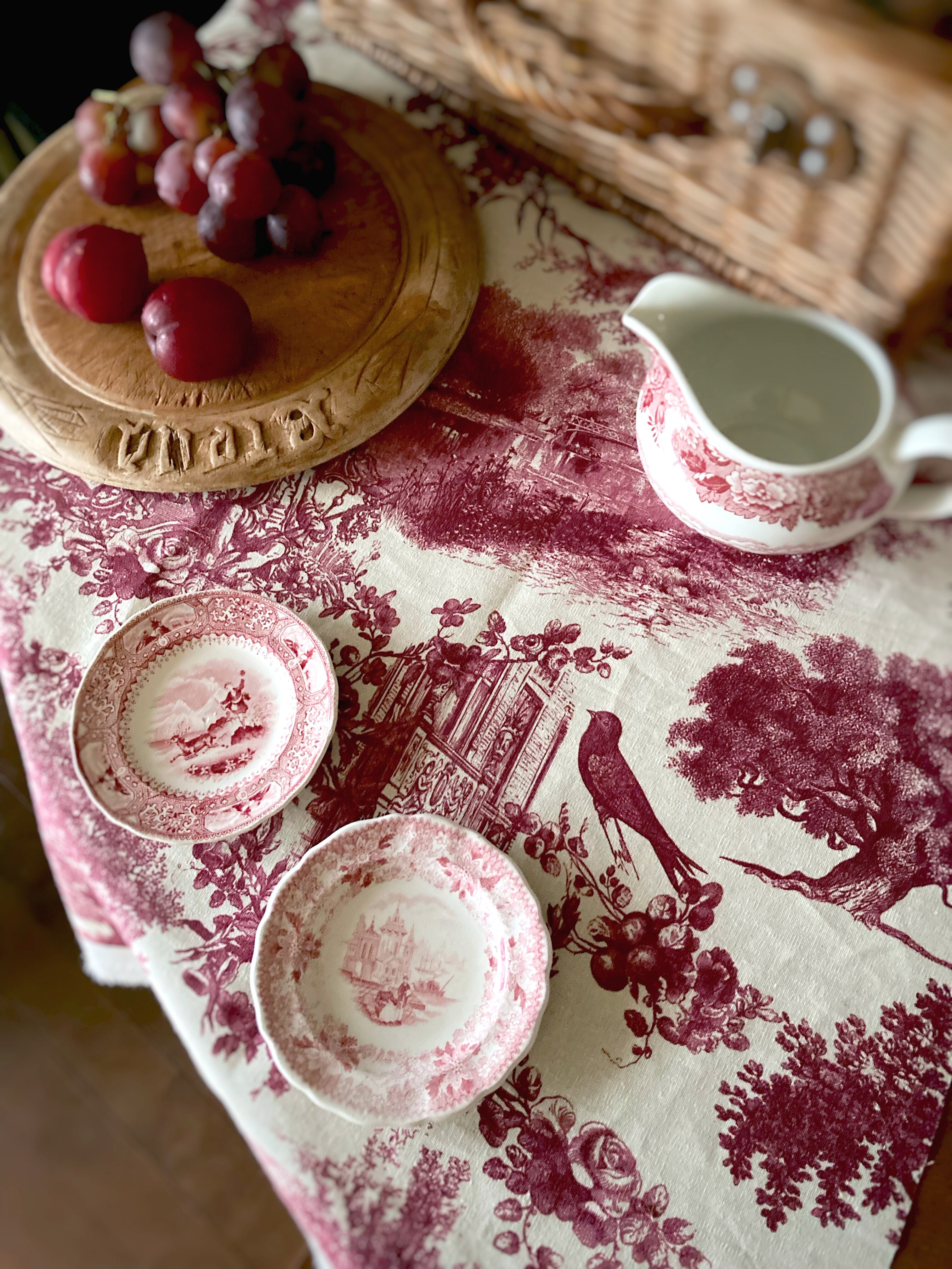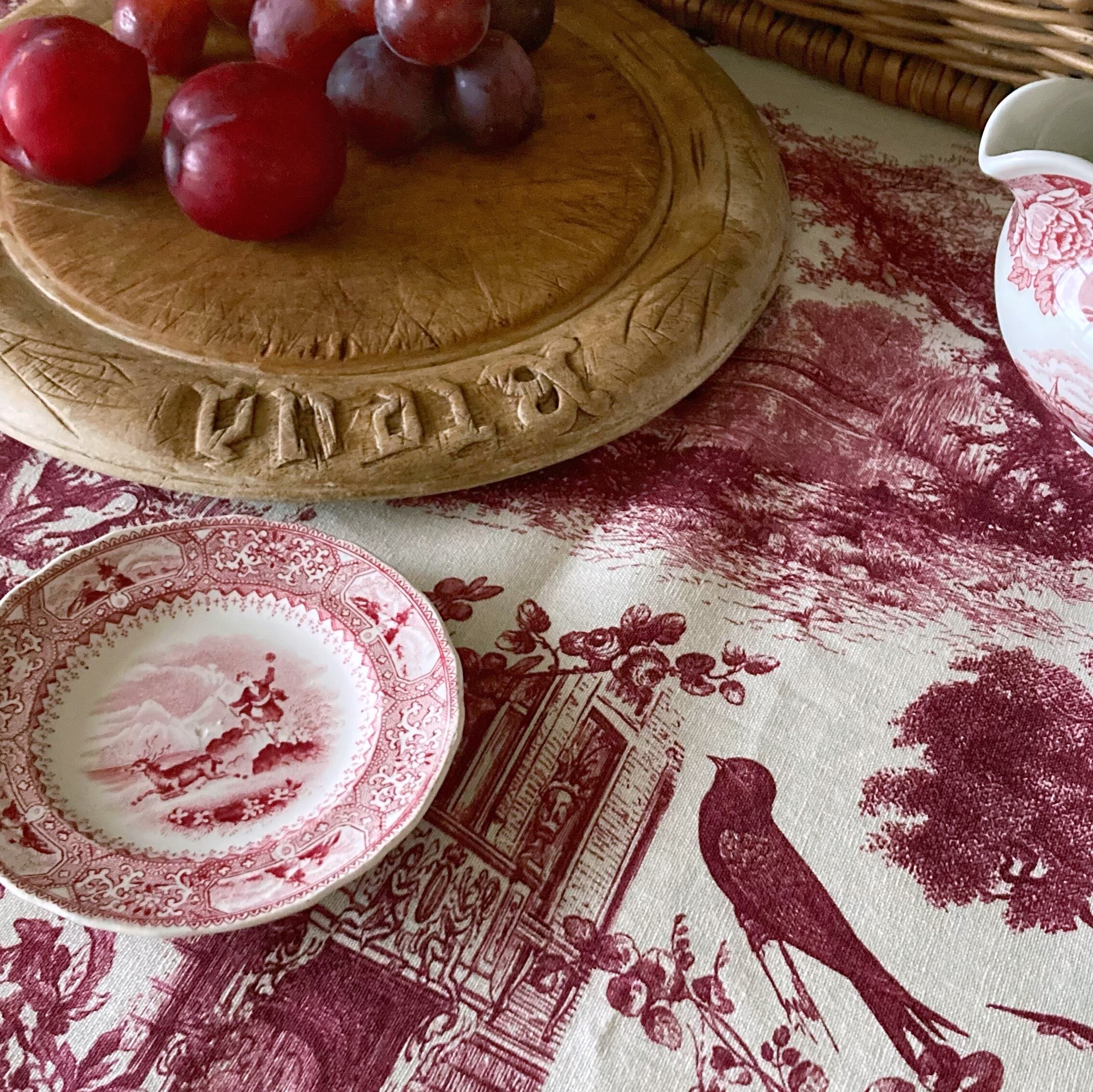 『青い鳥の旅』トワルドジュイ柄 ボルドー Bordeaux コットンリネン 50cmにつき¥6300 1mより