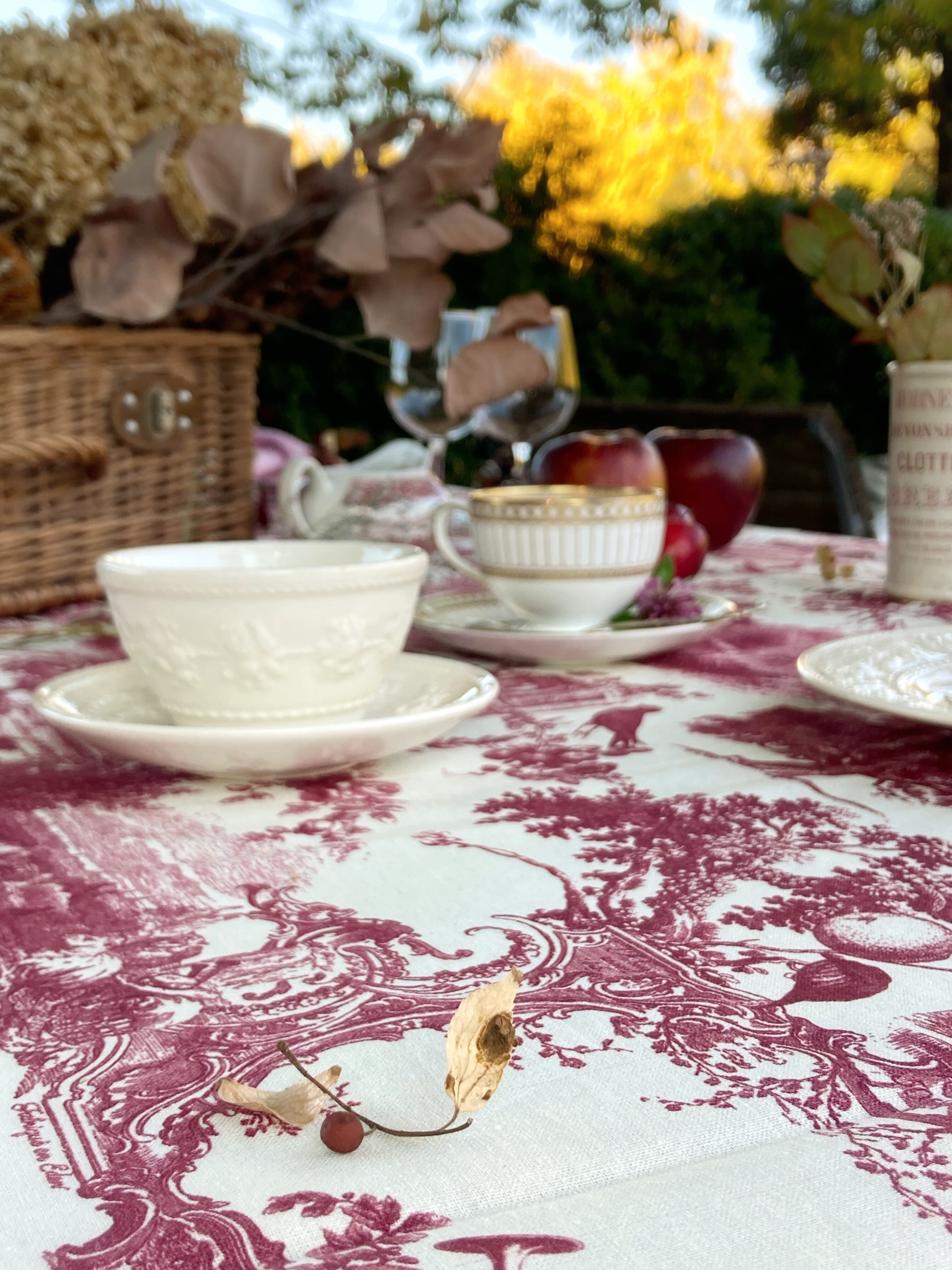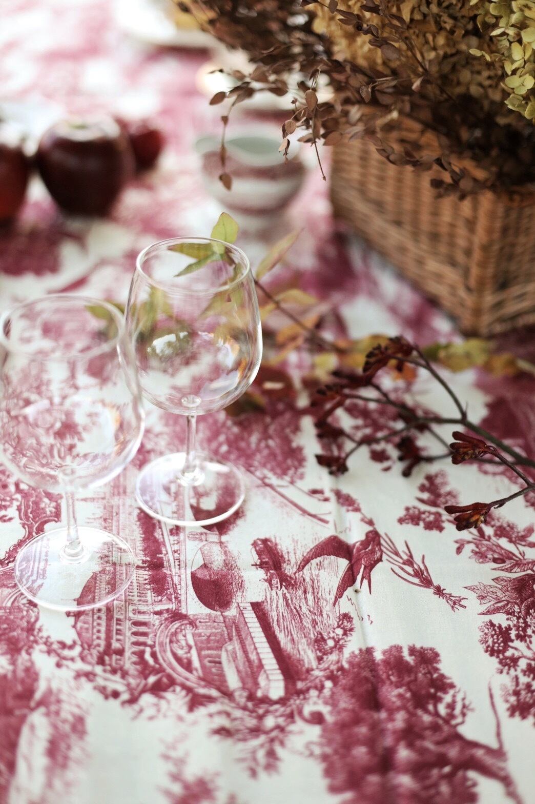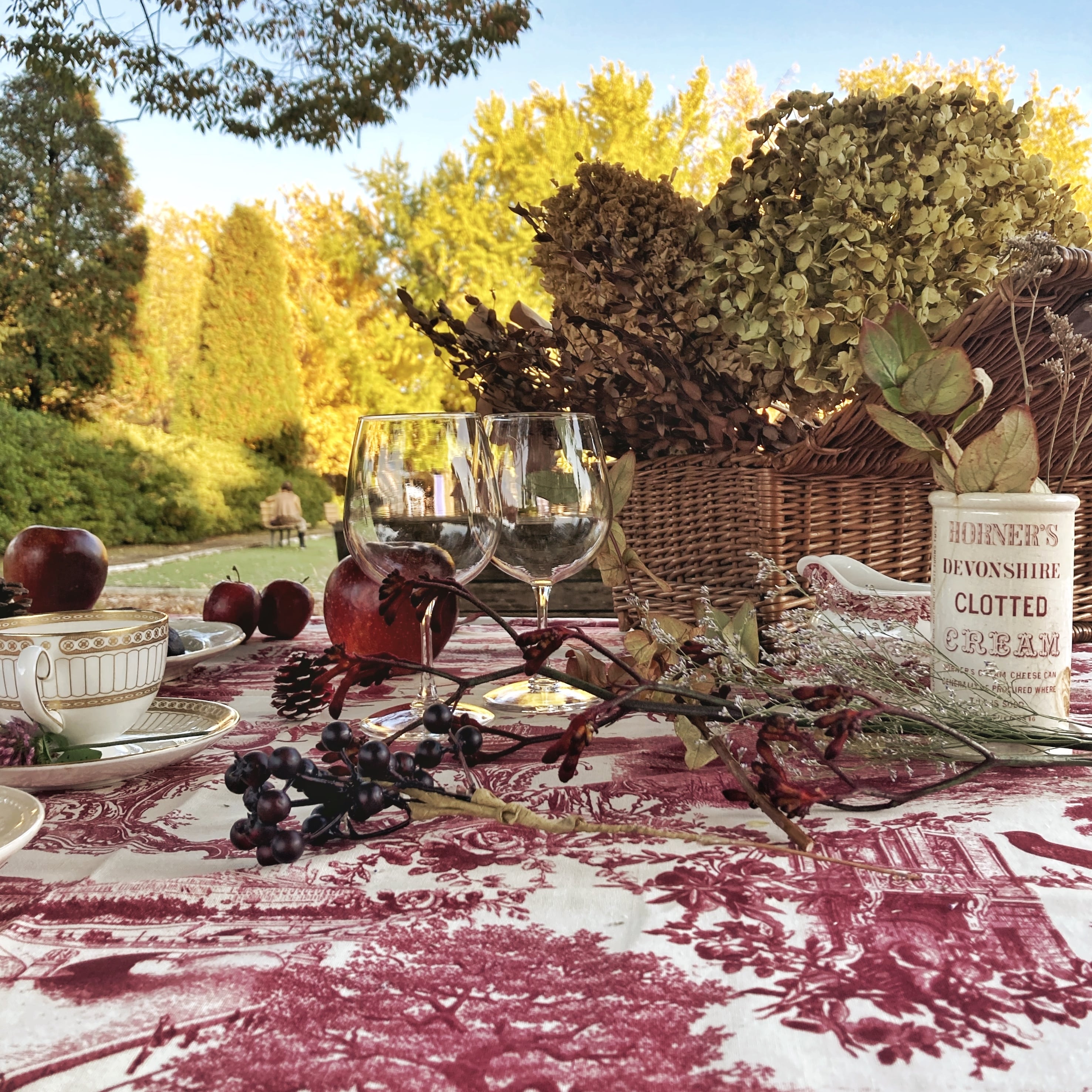 ピクニックやテラスでのお茶など田園的な雰囲気にもぴったり合うこちらのボルドー色。