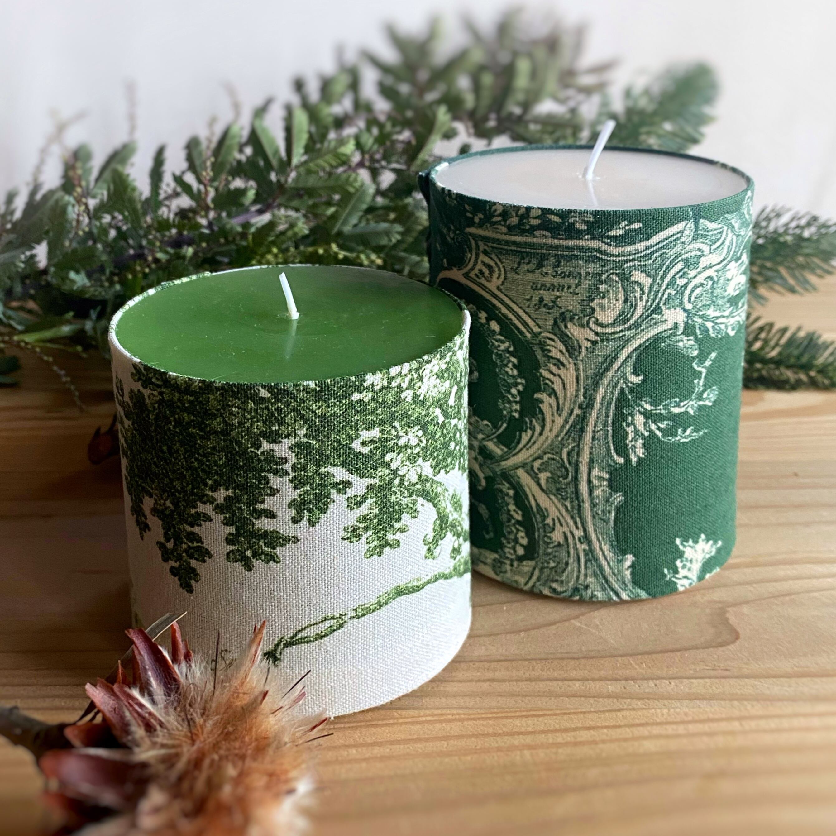 •キャンドル(アイボリー、グリーン) ×『Edenの布』コットンリネン素材