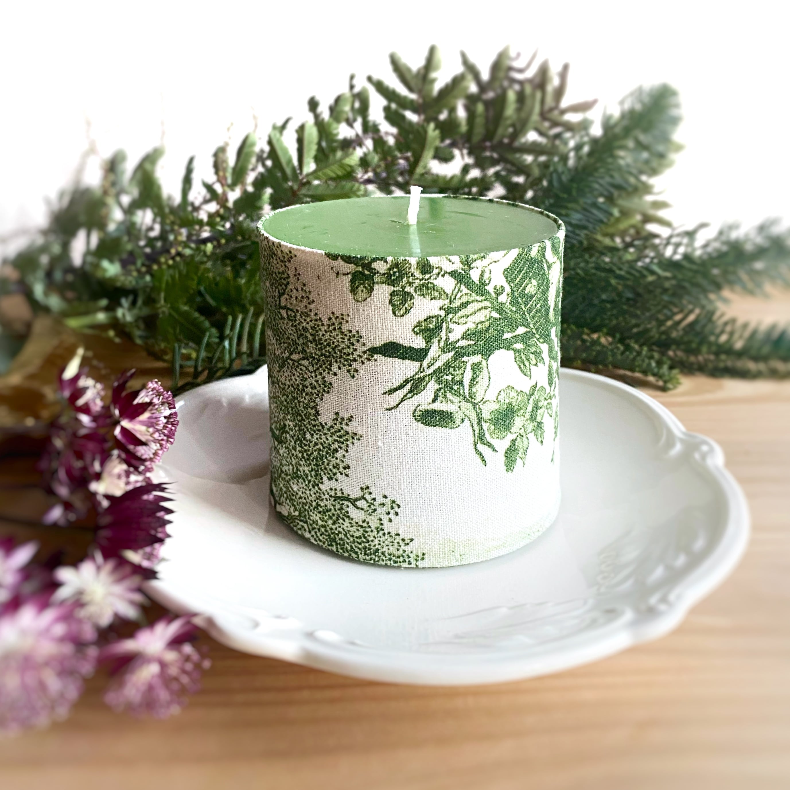 •キャンドル(グリーン) ×『Edenの布』コットンリネン素材