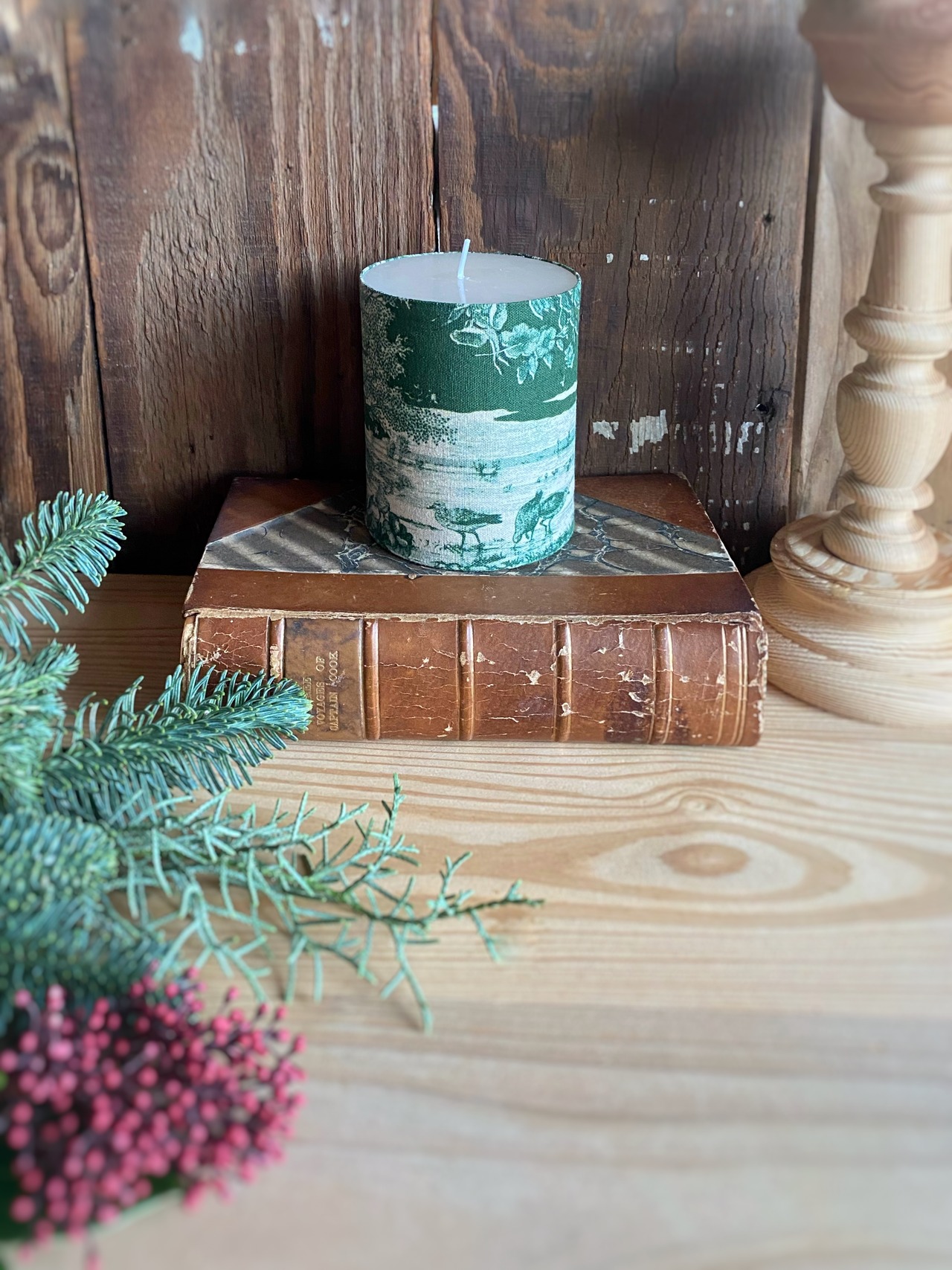 布が巻かれたキャンドルのため、