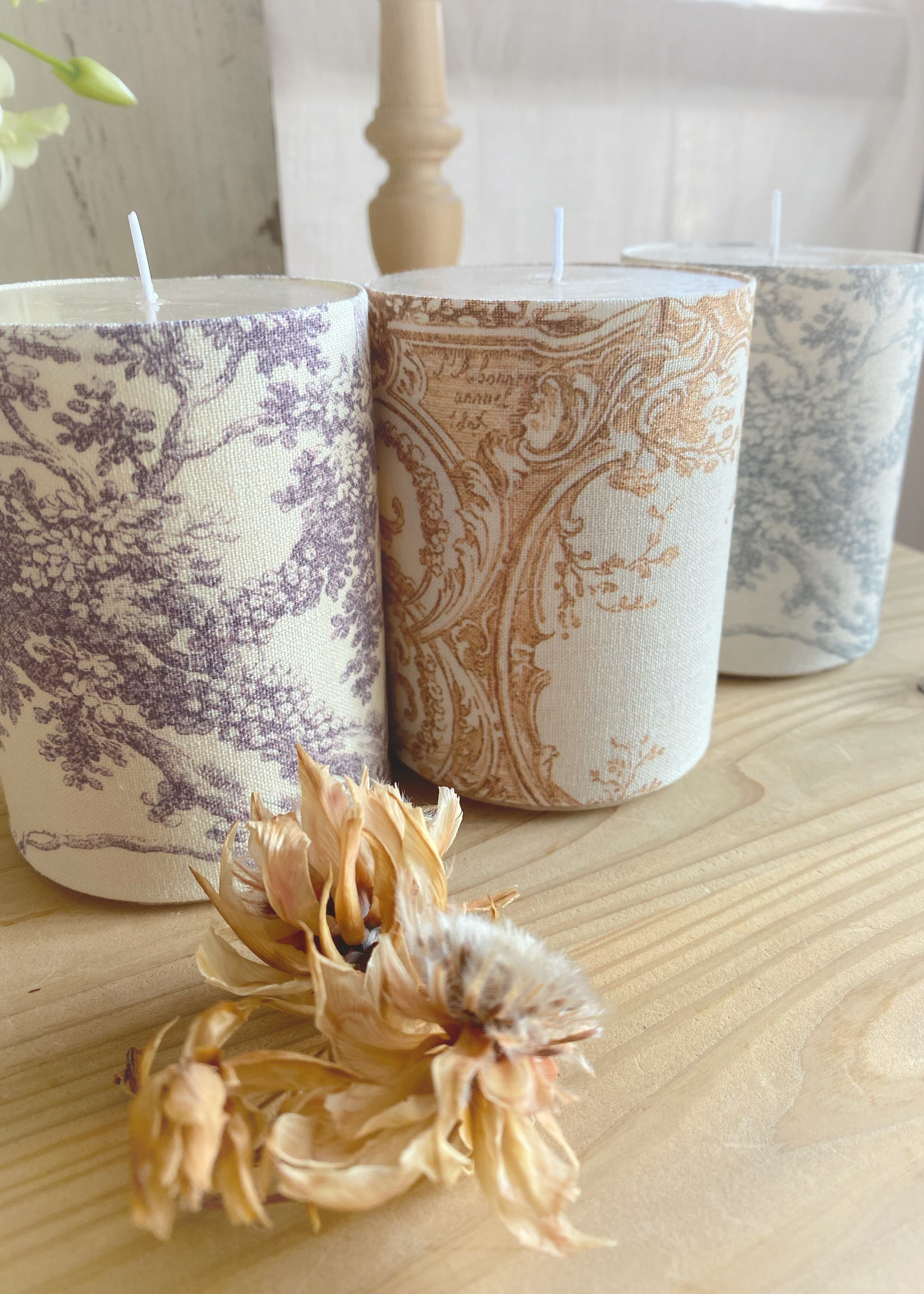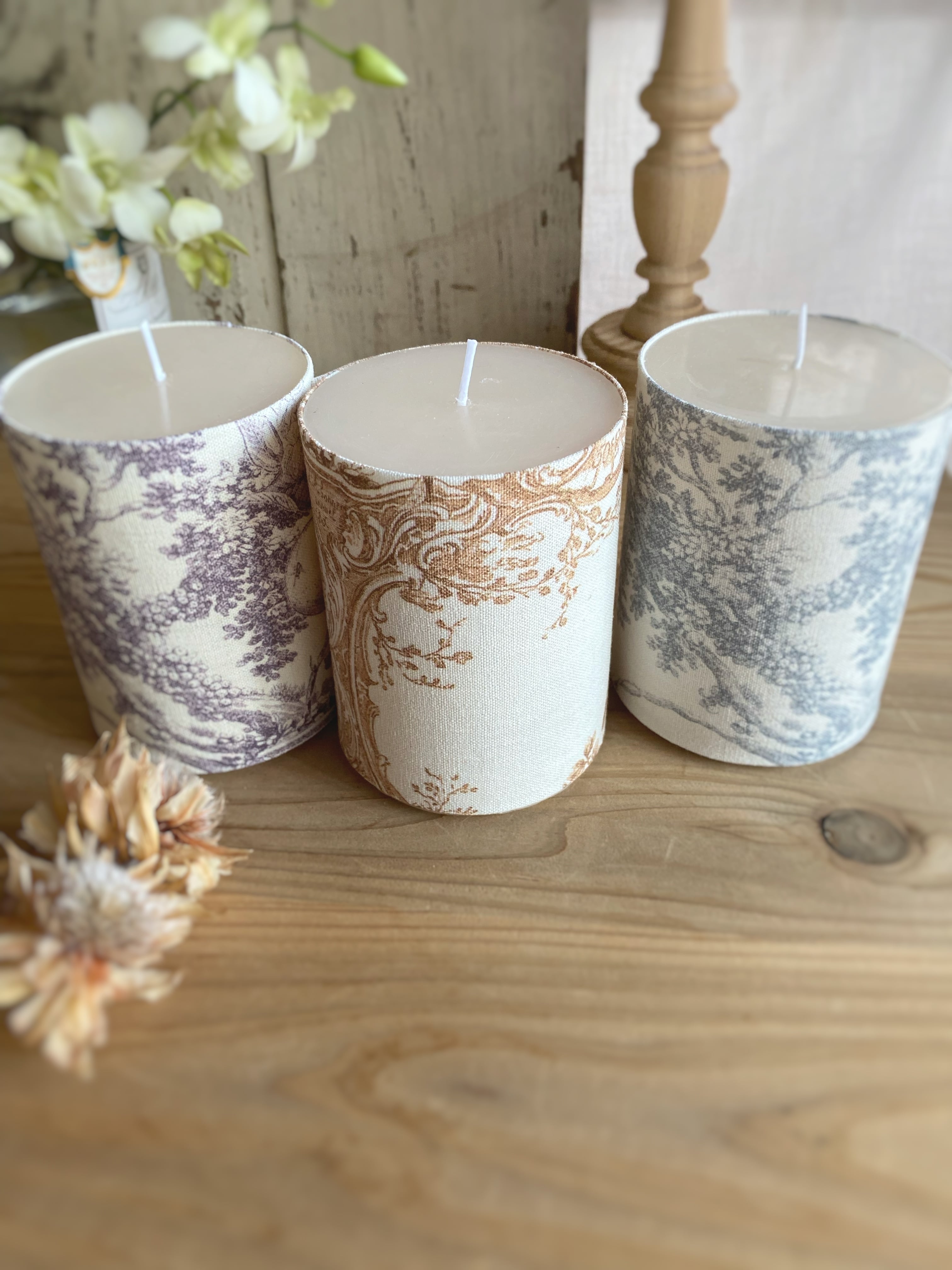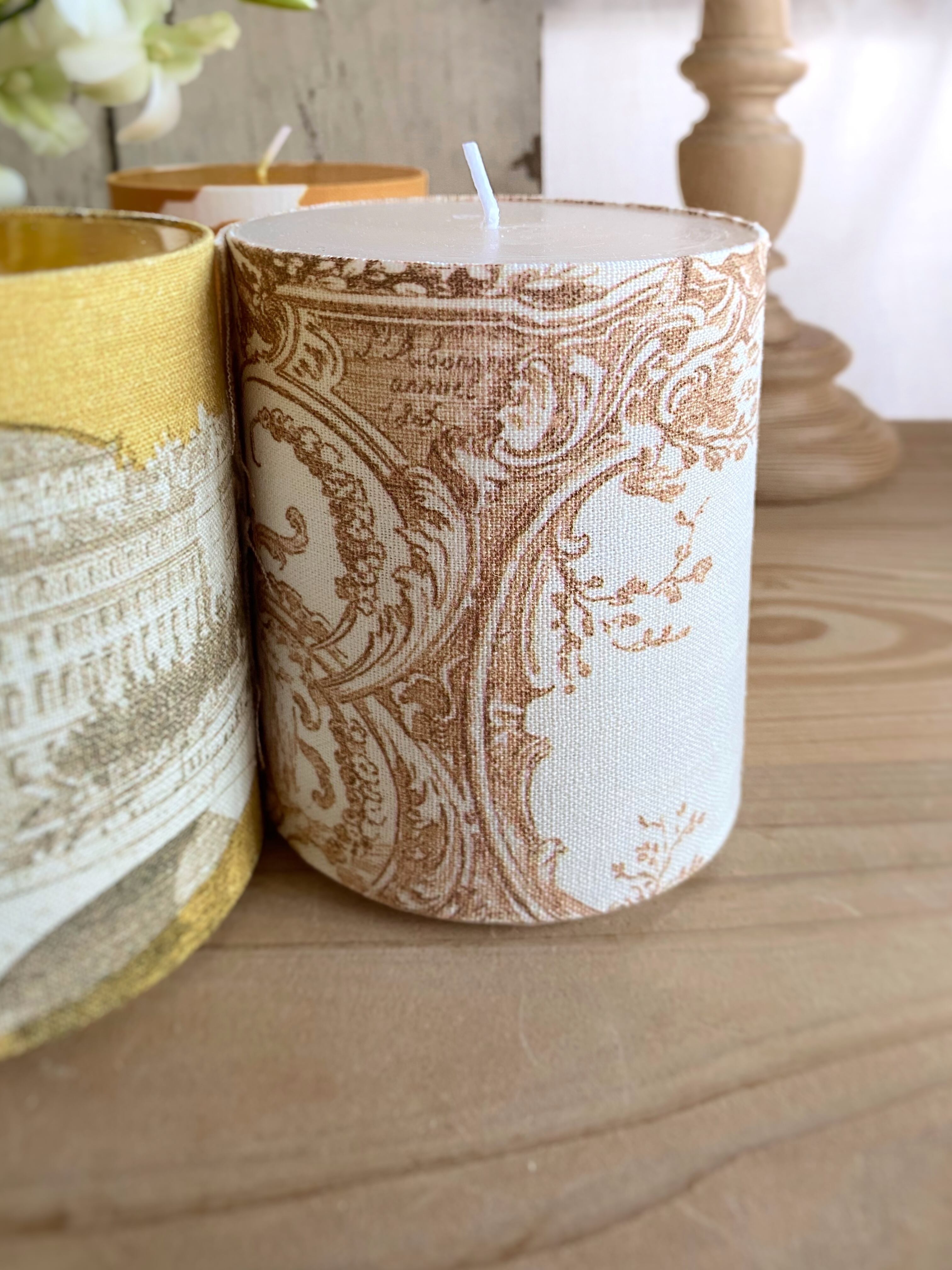 布が巻かれたキャンドルのため、