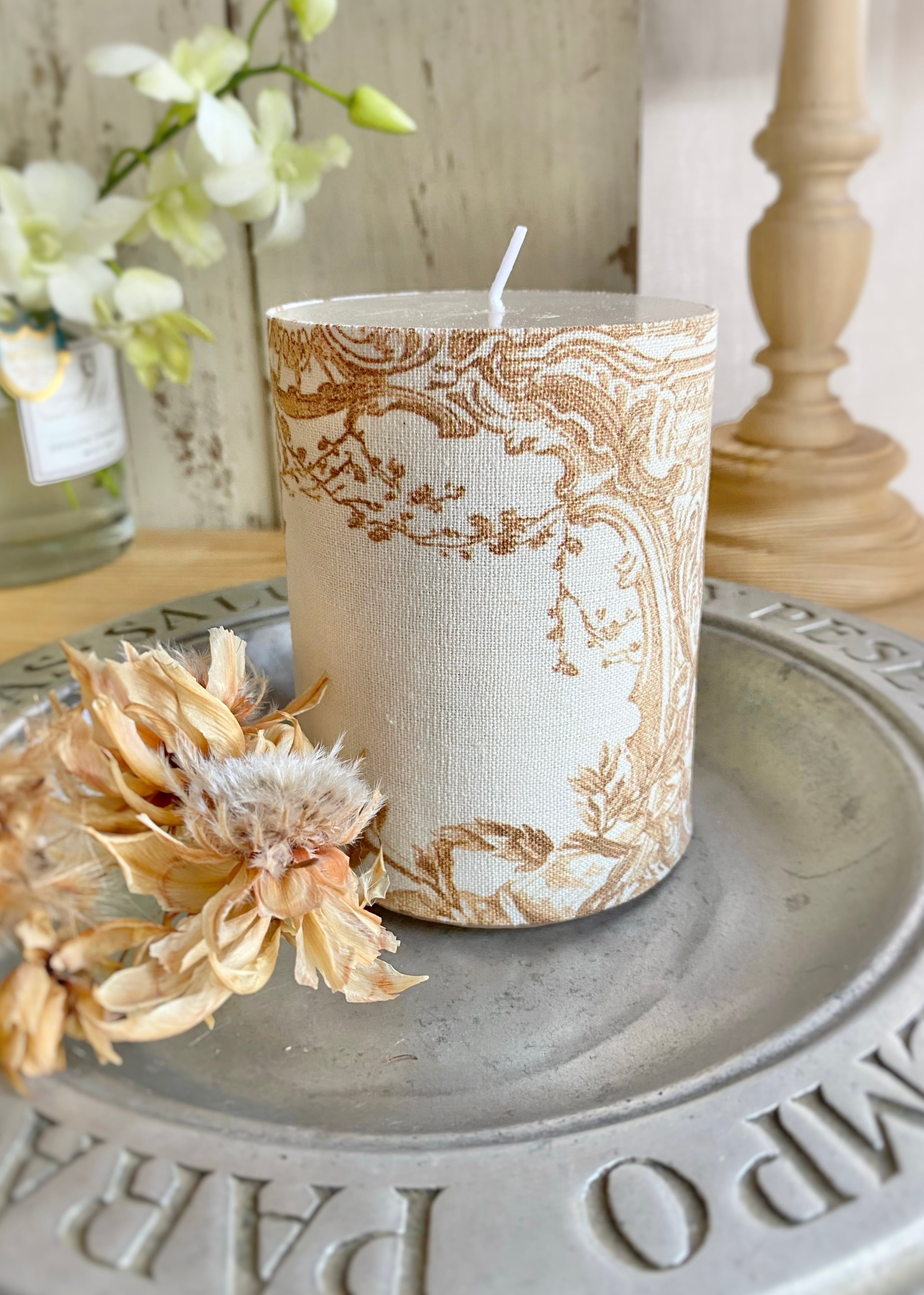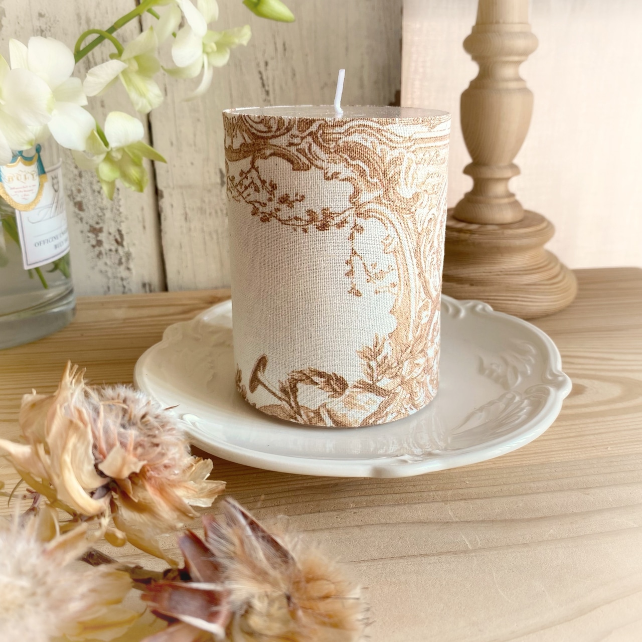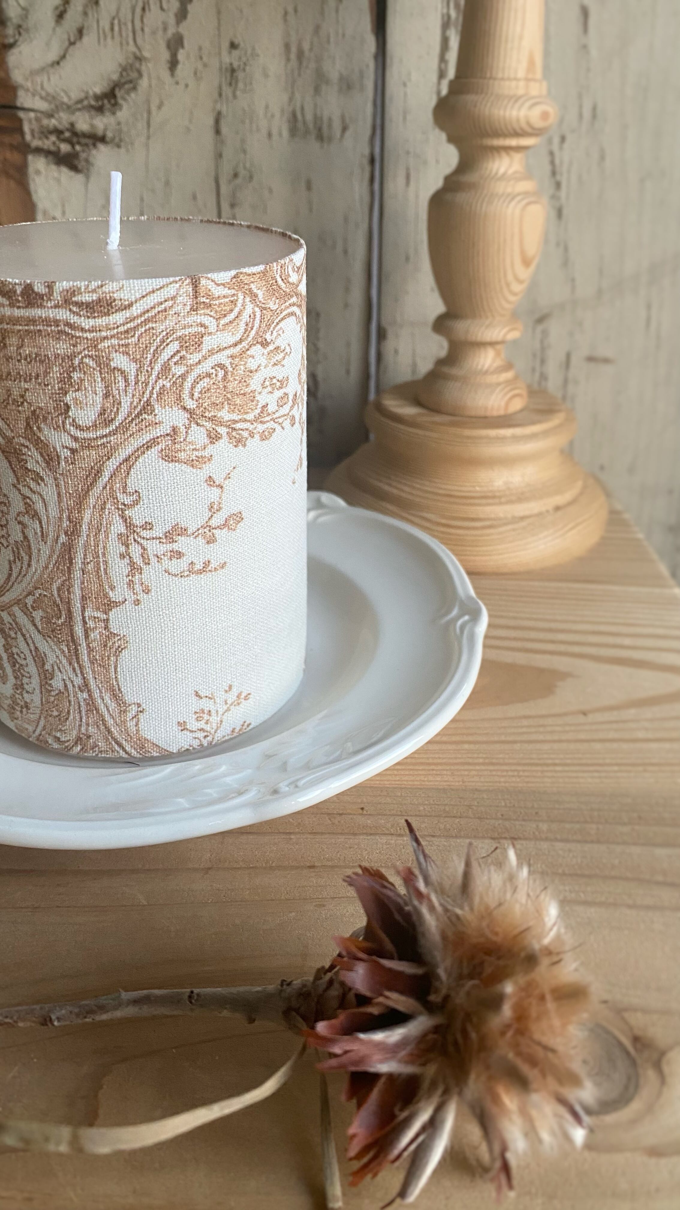 布が巻かれたキャンドルのため、
